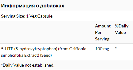 - 5-НТР (5-гидрокситриптофан) из семян Griffonia simplicifolia - 100 мг