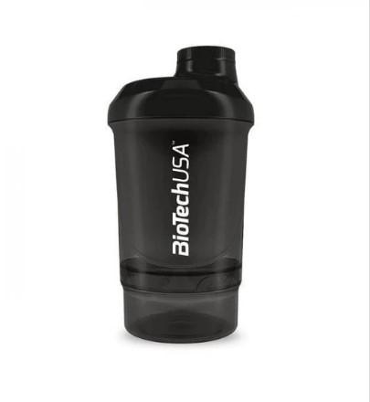 Шейкер Biotech Wave + Nano на 300 мл (дополнительно 150 мл) - стильный и практичный шейкер для смешивания протеиновых коктейлей и других напитков. Оснащен особым контейнером, присоединяющимся к дну шейкера байонетным соединением (присоединяется и отсоединяется с помощью осевого поворота). Контейнер имеет объем 150 мл и предназначен для хранения сухих порошковых добавок и таблеток.
