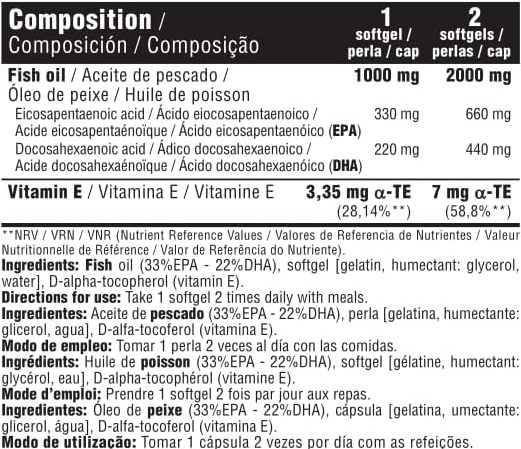 - 330 мг EPA і 220 мг DHA на капсулу.