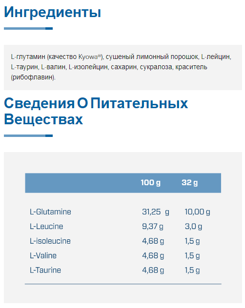 Gluta 5 - один из наиболее полноценных продуктов для восстановления мышц после усталости, понесенной во время самых интенсивных тренировок или непрерывного образа жизни. Эффект глютамина приводит к большому восстановлению мышц, лучшей гидратации клеток и важному антикатаболическому эффекту, который предотвращает любой риск для мускулатуры. BCAA - незаменимые аминокислоты, поскольку они не производятся организмом человека. Их нужно принимать извне. Это самые важные из них, способствующие укреплению мускулатуры за счет улучшения анаболического состояния. Таурин лучше реагирует на нервные раздражители. В общем, это идеальная смесь восстанавливающей смеси и мышечного конструктора.
