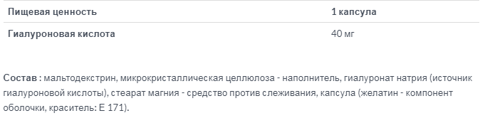 40 мг гиалуроновой кислоты в одной капсуле