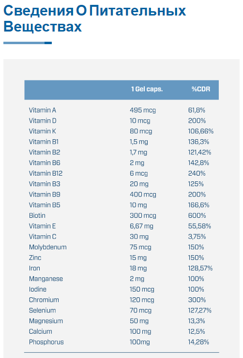 Большинство витаминов и минералов не могут быть полностью синтезированы или синтезированы организмом, поэтому они должны поступать из внешнего источника. Антиоксидантная функция, усвоение железа или усвоение коллагена витамина С, правильное развитие нервной системы, усвоение пищи и ее использование в качестве источника энергии или правильного роста клеток, обеспечиваемых витаминами группы B; или существенный вклад в скелет и существенное участие в метаболических функциях минералов - вот некоторые из отличительных черт этого поливитаминного комплекса.