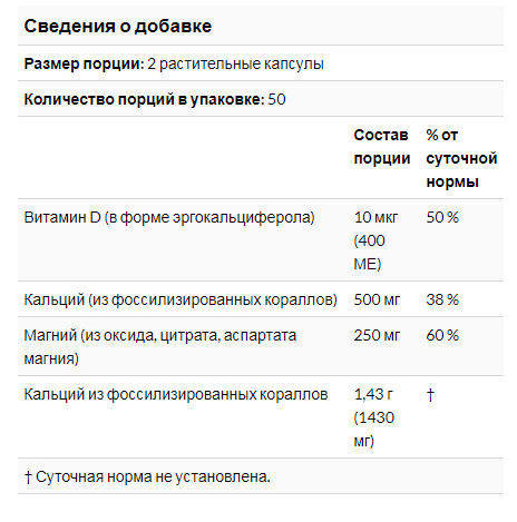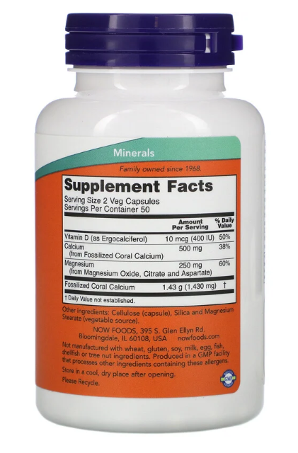 Продукт «Коралловый кальций плюс» от NOW® — это отличный источник щелочной формы кальция, который может помочь поддерживать здоровый кислотно-щелочной баланс. Кроме того, кальций из кораллов содержит микроэлементы природного происхождения, которые важны для здоровья костей, а также для оптимальной ферментативной активности. Продукт «Коралловый кальций плюс» от NOW® производится не из живых коралловых рифов или даже из океанской среды, а из наземных источников экологически чистым способом. В эту формулы добавлены магний и витамин D, играющие важную роль в костном метаболизме.