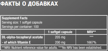 Vitamin E – добавка, предназначенная как профессиональным спортсменам, так и людям, постоянно испытывающим высокие физические нагрузки. Основанная на натуральном антиоксиданте она участвует в регенерации тканей, помогает добиваться наилучших атлетических достижений и защищает мышцы от усталости. Обладает препарат и отличными восстанавливающими качествами, обеспечивая быстрое заживление ран и уменьшая возможность образования шрамов.