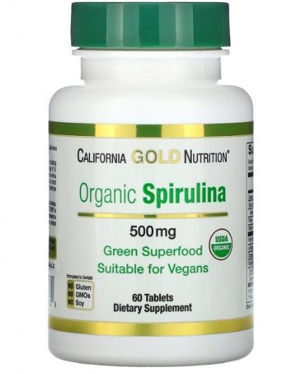 California Gold Nutrition, органическая спирулина, сертификат USDA, 500 мг, 60 таблеток