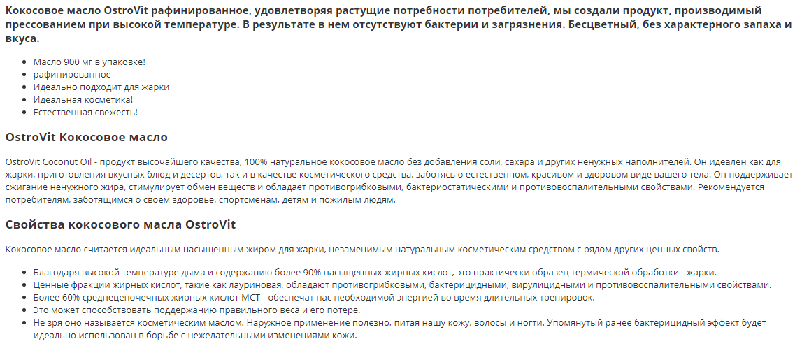 Coconut Oil 900 г OstroVit (900 g)