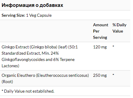 Этот продукт двойной силы имеет в два раза больше гинкго билоба (120 мг), чем в обычном продукте (60 мг).