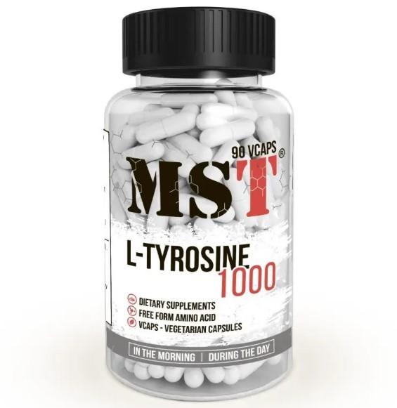 Аминокислотный продукт на основе L-тирозина MST L-Tyrosine 1000 повышает работоспособность, подавляет аппетит, помогает сохранить мышечную ткань от разрушения даже в период сушки, участвует в реакции, которая помогает стимулировать выработку энергии из жировой ткани, то есть является вспомогательным веществом при сжигании жира. При хроническом стрессовом состоянии у человека плохо вырабатывается тирозин, что влияет на физическое состояние, например, очень часто плохое настроение и усталость. Поэтому следует дополнительно принимать эту аминокислоту в виде капсул.