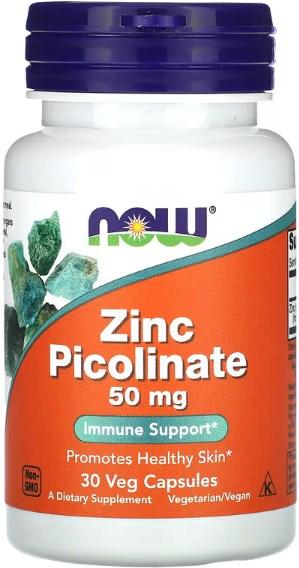 NOW Zinc Picolinate 50 mg 30 рослинних капсул — це харчова добавка для підтримки імунної системи, здоров’я шкіри та гормонального балансу.
