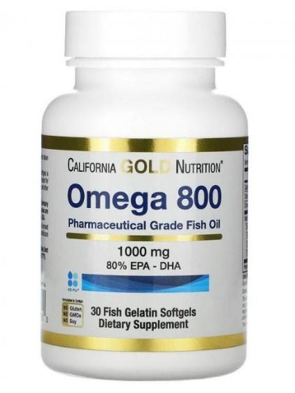 Основные факты о добавке California Gold Nutrition, Omega 800 by Madre Labs, Pharmaceutical Grade Fish Oil, 80% EPA/DHA, Triglyceride Form, 1000 mg, 30 Fish Gelatin Softgels: