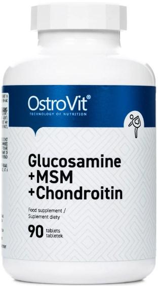 OstroVit GLUCOSAMINE + MSM + CHONDROITIN 90 табл - таблетована харчова добавка, яка містить в своєму складі глюкозамін, хондроїтин та метилсульфонілметан (MSM). GLUCOSAMINE + MSM + CHONDROITIN застосовується для попередження дегенеративних змін в суглобах, обумовлених надмірним навантаженням на них в результаті інтенсивних і тривалих тренувань.