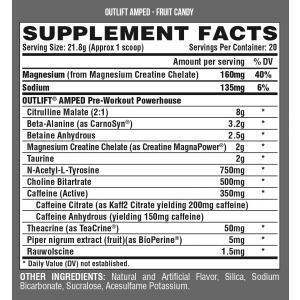 OUTLIFT AMPED - это первая предтренировочная программа, в которой сочетаются клинически дозированные ингредиенты для повышения производительности, силы и накачки с мощными стимуляторами.