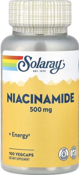 Solaray Niacinamide — це спеціальна форма вітаміну B3 (нікотинамід), яка забезпечує організм необхідною підтримкою для збереження енергетичного балансу, здоров’я шкіри та належного функціонування нервової системи. Ця форма вітаміну B3 не викликає ефекту "приливу тепла" (flush-free), роблячи продукт комфортним у використанні.