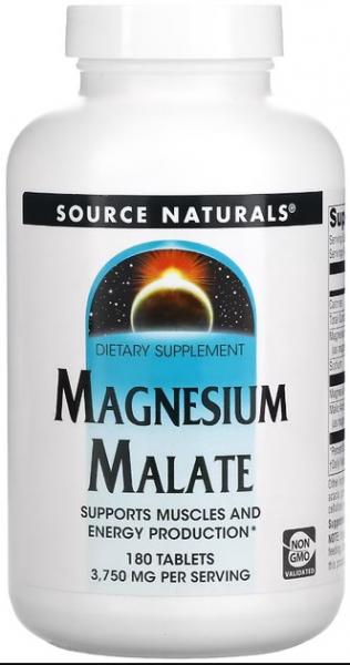 Магнію малат (Magnesium Malate) Source Naturals - це з'єднання магнію та яблучної кислоти. Він підтримує правильну роботу м'язів, здоров'я серцево-судинної системи та вироблення енергії. Він підтримує функцію м’язів, здоров’я серцево-судинної системи й вироблення енергії. Яблучна кислота — натуральна фруктова кислота, що міститься в більшості клітин організму і бере участь у циклі Кребса, у якому енергія зберігається під час метаболізму вуглеводів і жирів. Магній — кофактор, необхідний для понад 300 ферментних реакцій метаболізму, синтезу АТФ і вироблення енергії. Магній відіграє важливу роль у розслабленні м’язів через його функції кофактора для ферментів і завдяки здатності врівноважувати кальцій у клітині.