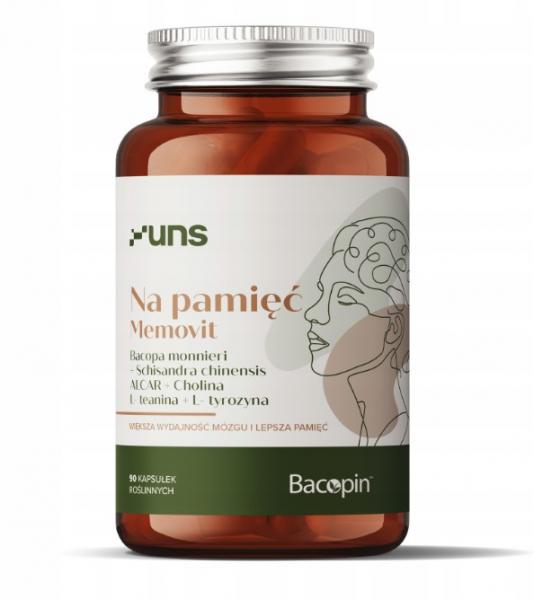 Харчова добавка UNS – Na Pamiec Memovit містить у своєму складі комплекс, що підтримує правильне функціонування пам'яті. Комплекс має ноотропну дію. Бакопін® покращує роботу мозку, підвищує концентрацію уваги та покращує пам'ять. Екстракт лимонника китайського підтримує організм у стресових ситуаціях. Ноотропи (ацетил-L-карнітин (ALCAR) та холін) підвищують рівень нейромедіаторів. L-тирозин пригнічує стомлюваність та позитивно впливає на роботу мозку. Ніацин та вітамін B6 позитивно впливають на нервову систему та психічний стан організму.